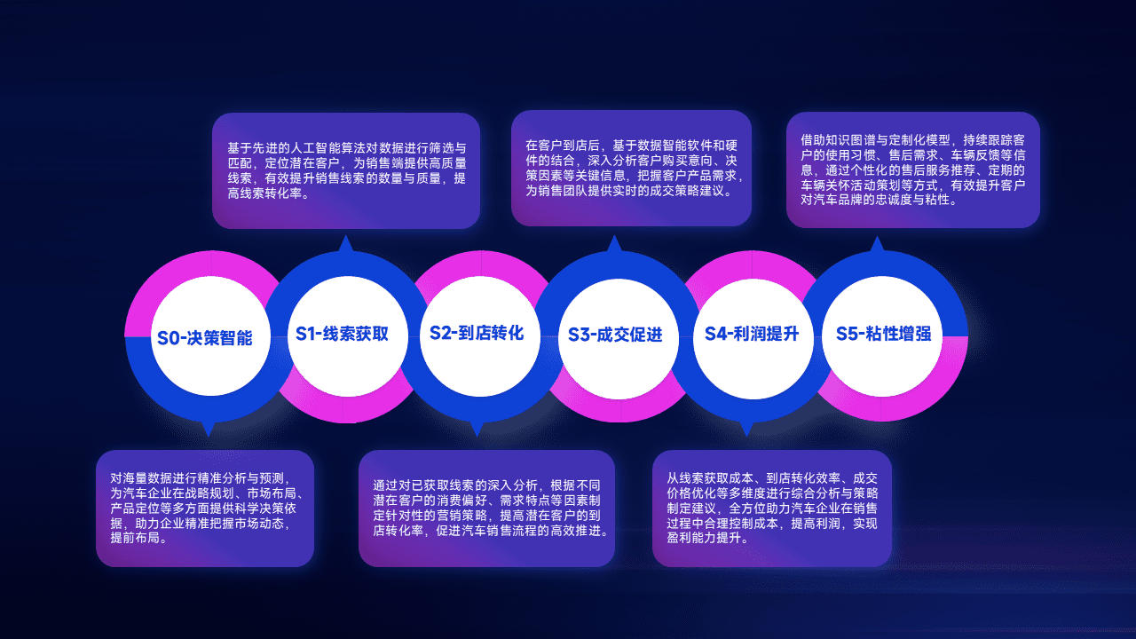 通过拓宽潜在客户来源、、、、优化线索分配并提高到店转化率,,,,以增强销售效率。。。同时,,利用线索数据不断优化分析模型,,,,有效提升转化率,,,扩大营销影响力。。。